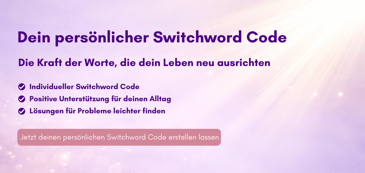 Switchwords sind kraftvolle Worte, die sich direkt mit deinem Unterbewusstsein verbinden. Sie helfen dir dabei Blockaden zu lösen und aktivieren deine Fähigkeit Erfolg, Wohlstand, Liebe, Selbstheilung und vieles mehr zu manifestieren.
